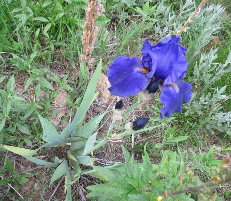 What a surprise, somehow we have a lovely dark blue/purple iris growing on our property.  I have no idea how it got here, but it is quite beautiful.  Hadn’t noticed it until today.