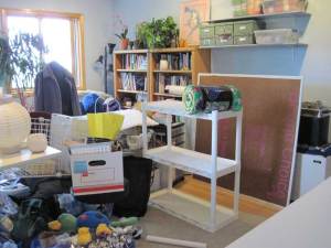 This ongoing project of turning what was my Massage office into my Design office is getting a bit cumbersome. At the moment this is the state it is in.