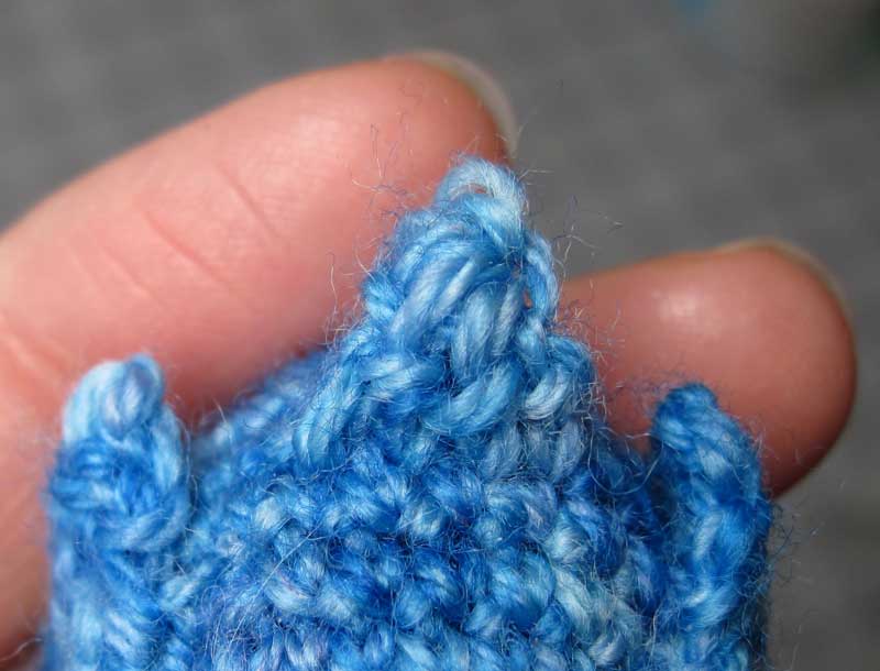 Kathleen recommends using a hand lotion or hand salve on your hook to improve the “glide” of the yarn over the hook and thru stitches. Her favorite salve to use is Burt’s Bee Hand Salve. She also recommends the use of a metal hook like the Susan Bates Silvalume. I found I didn’t need the lotion or salve when using my Clover Soft Touch hooks especially as I wanted a loose stitch structure. I do like the salve for tighter projects though. The finished fabric is very elastic with a structured quality and a slight grippy feel to it.