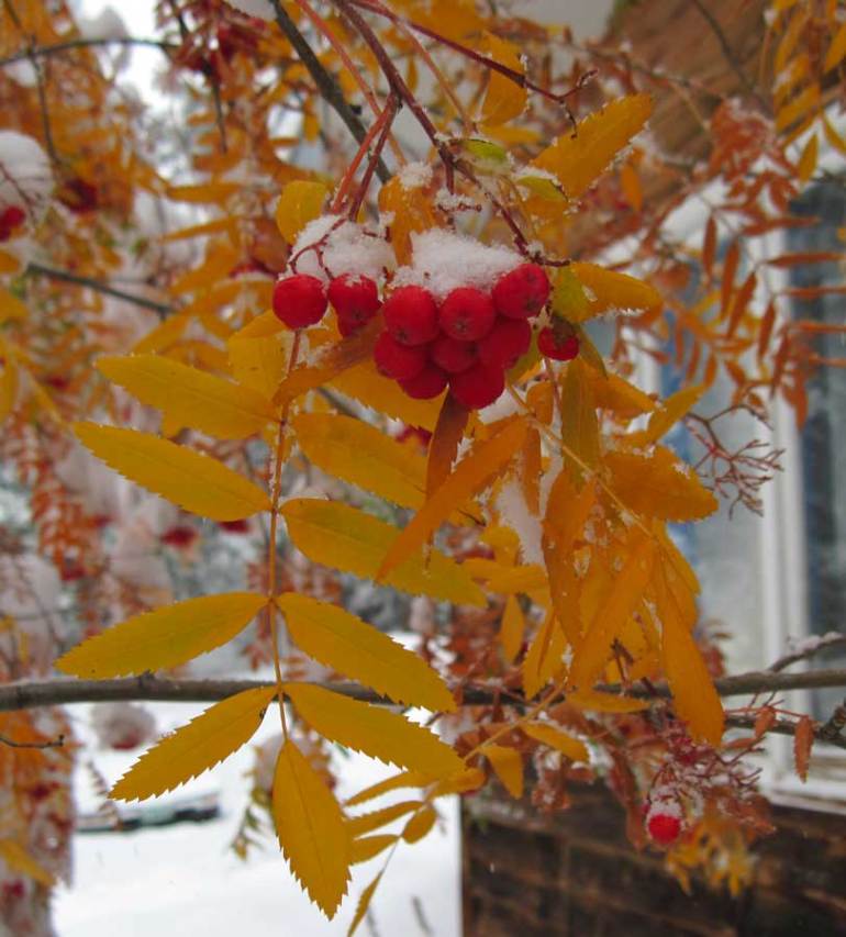 It blooms with lovely sweet-scented white flowers in the spring that later turn into orange-colored berries. I always know when we have had our first significant freeze because the berries turn bright red. It is also one of the few trees on our property that puts on a proper color show in the Fall.
