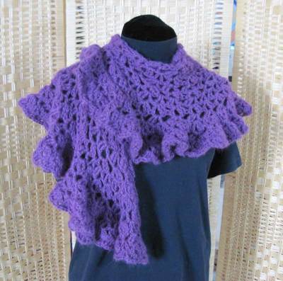 This photo was one I included to show the shawlette in my proposal for a “Fluffy Ruffles” Shawlette/Scarf to Crochet! Magazine. I also used Universal Yarns’ Swiss Mohair to create a swatch of the stitch pattern as another suggested yarn for this pattern.