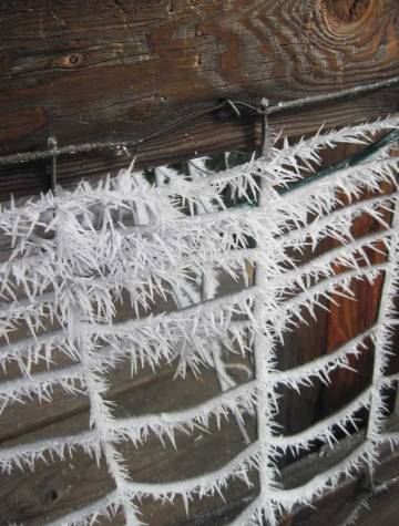 Another very cold day up here on the mountain. Third day in a row that the temperature has been below 40F. Quite a lot below that last night and this morning. At 9 a.m. , when I was taking these photos, it was 25F. Currently it is a balmy 28F. It will actually have to warm up a bit before we will get more snow.