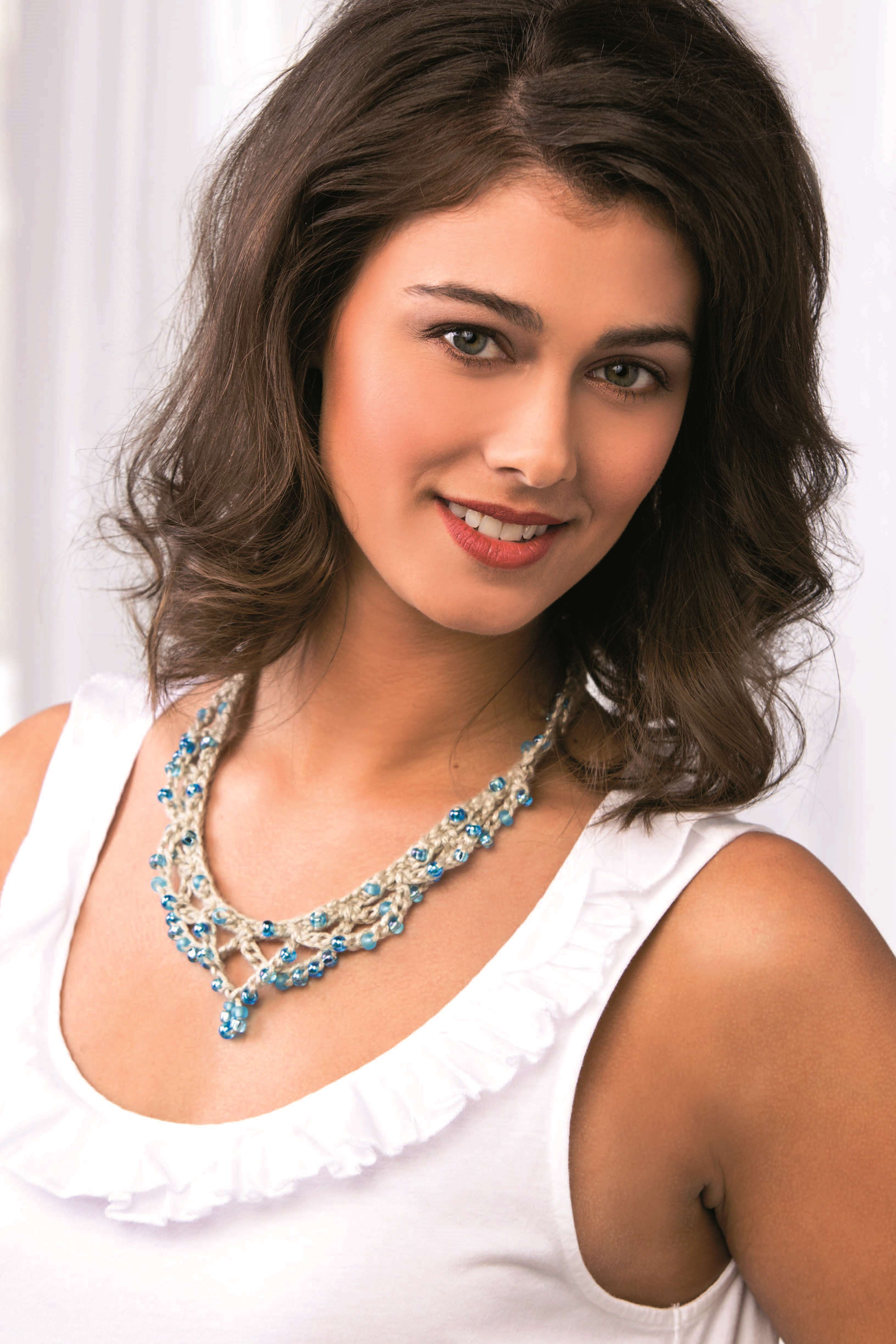And the Sea & Sand Necklace, a fun simple-to-make beaded crochet project that will look great with summer necklines. I designed this using Paton’s Silk Bamboo blend thread. I like silk and silk blends for jewelry as it is a very strong fiber and tends to hold up better to wear. Plus there is the gleam of the fiber and the way it holds color.