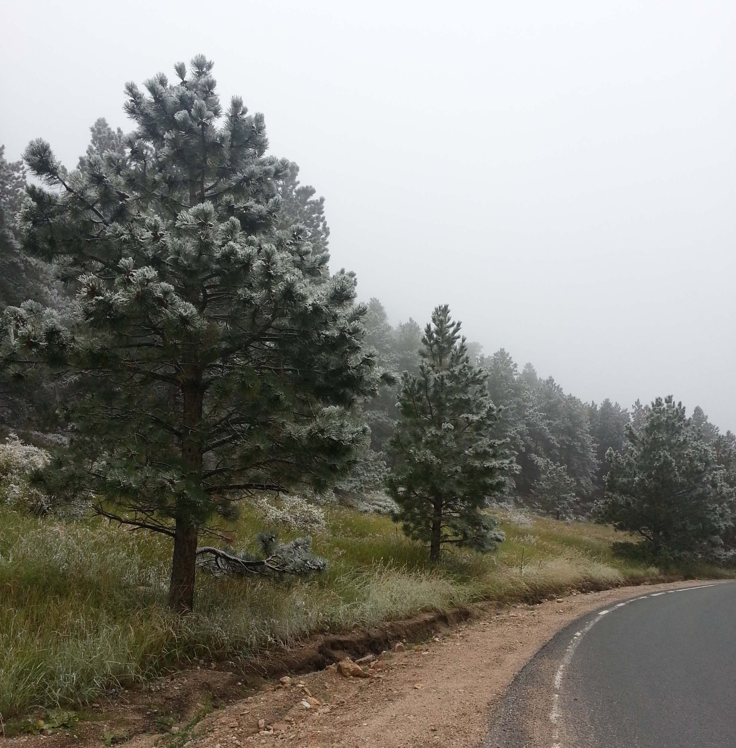 Then I headed down the mountain a little ways to have some crochet time with my friend V. When I drove back up a few hours later the top of the mountain was socked in with fog. It was beautiful and I decided to stop and take a few photos.