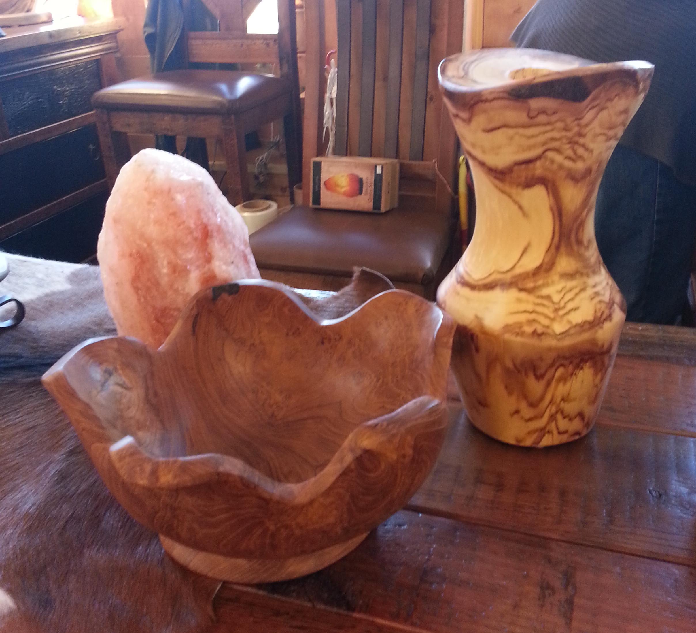 After we put our yarn purchases in the car we went to a local small coffee shop for lunch. We ate outside at picnic tables since the weather was so nice. Afterward we stopped at “Sticks and Stones” a fascinating shop full of hand crafted wood furniture and home accessories. Jan purchased some items to have shipped home to New Jersey.