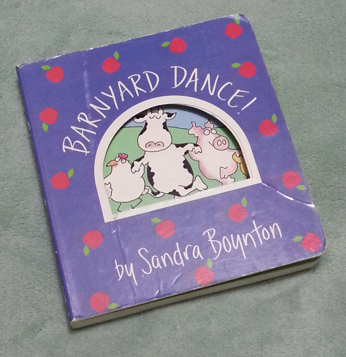 I also got the new baby a Sandra Boynton book “Barnyard Dance” that was my boys’ favorite when they were tiny. The photo above is of our very well loved copy. It is one of many things that are going into my box of items that will come out again someday in the distant future when I become a grandmother.