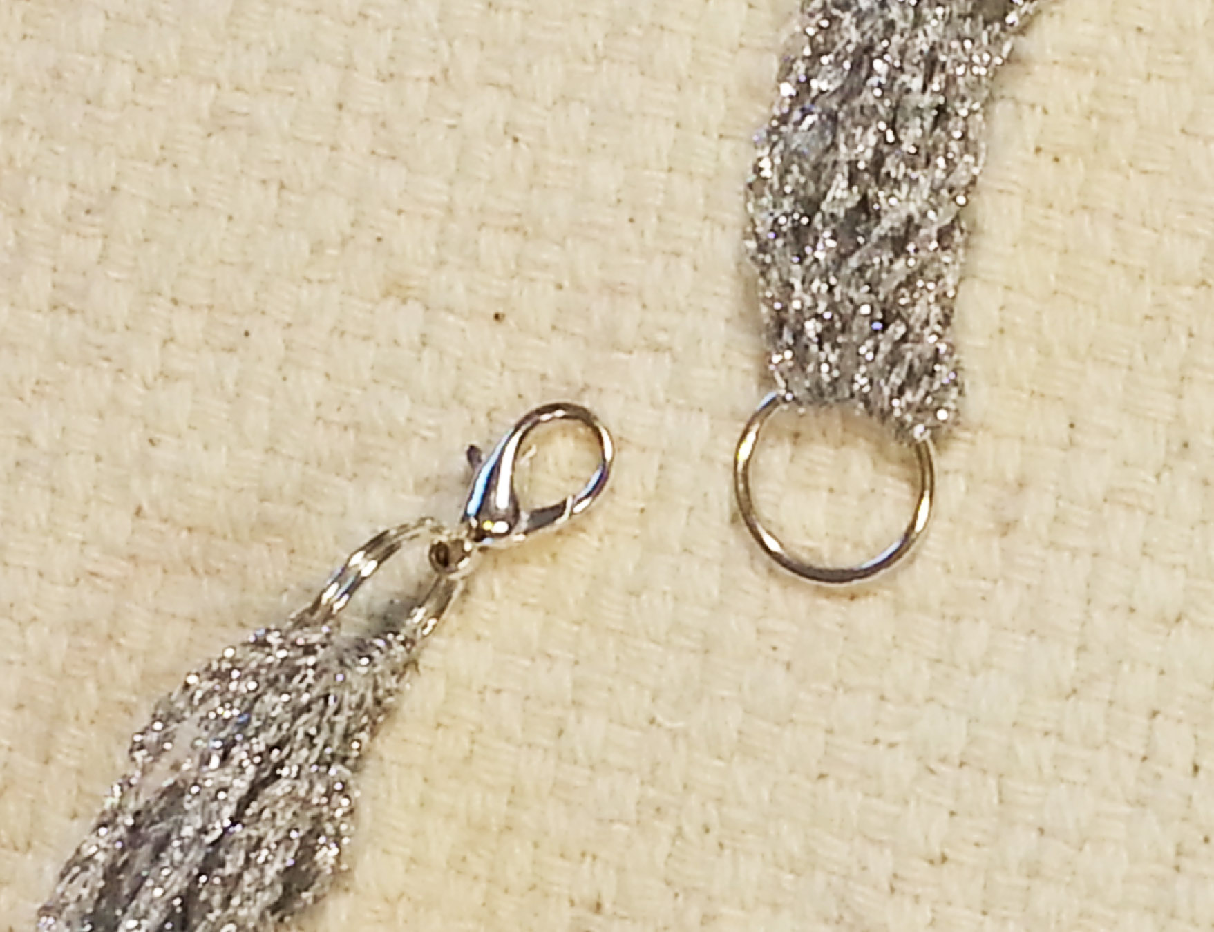 Note about the rings you use for the ends: I choose split rings because there is not an opening that the thread can slip thru causing your strands to drop off. If you prefer to use regular jump rings make sure that the opening in the ring is tightly closed.