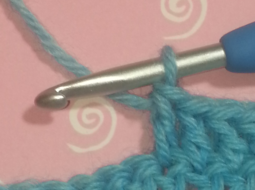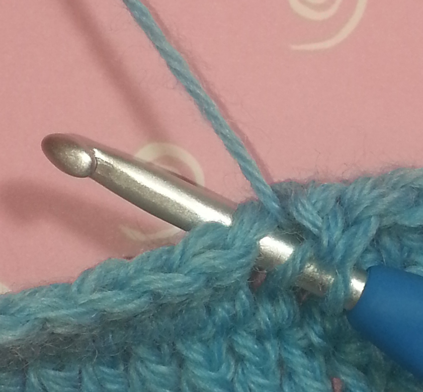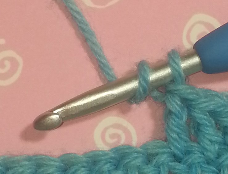 Wrap the yarn over the hook and pull that loop thru 2 of the loops on the shaft of your hook.