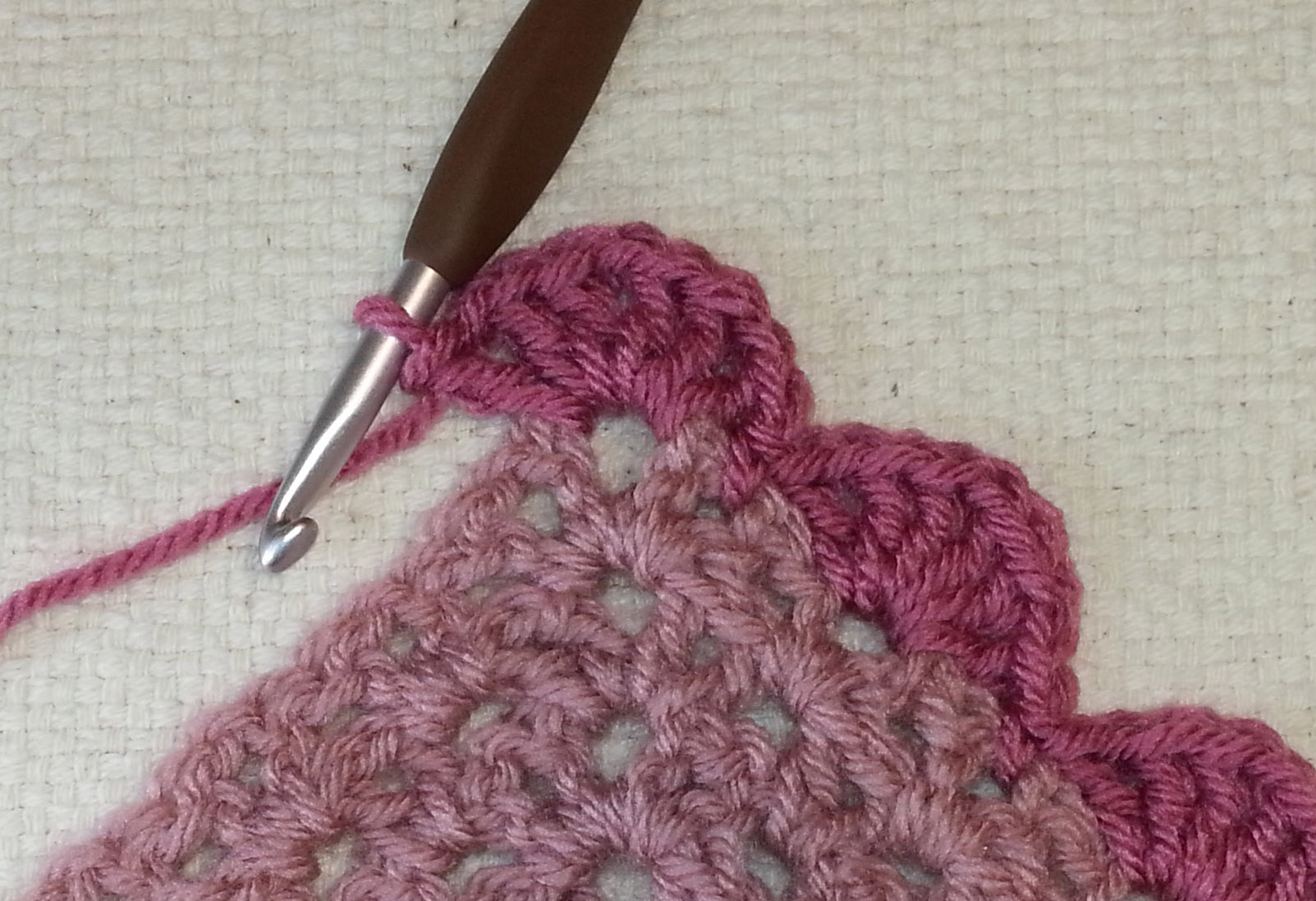 Border: I’ve shown the border worked it a different color to make it stand out clearer in the photos, you can continue in the same color as the body of the shawl or use a contrasting color.