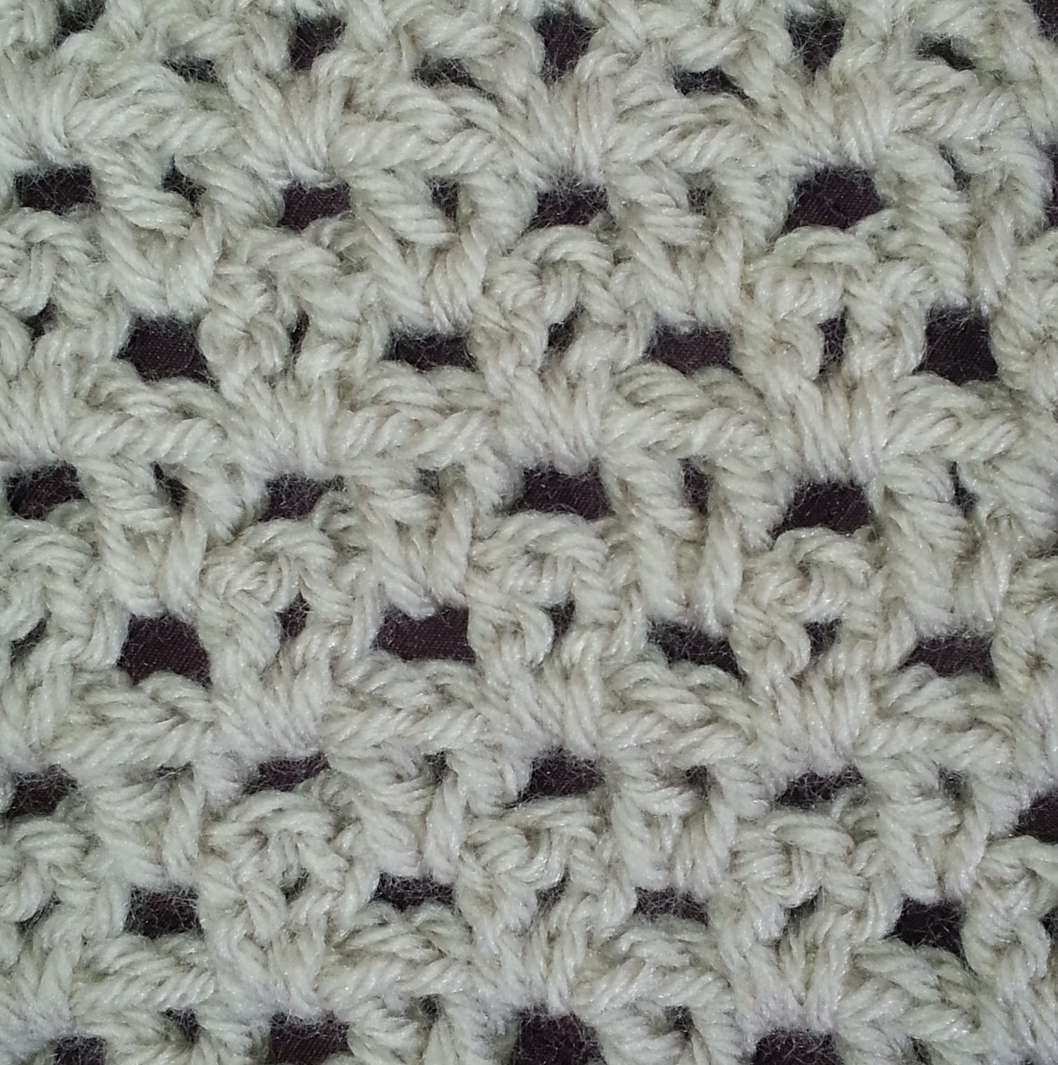 sk 2 sts, sc in next ch-1 sp, sk 2 sts, 2 V-st in next ch-1 sp, ch 1,