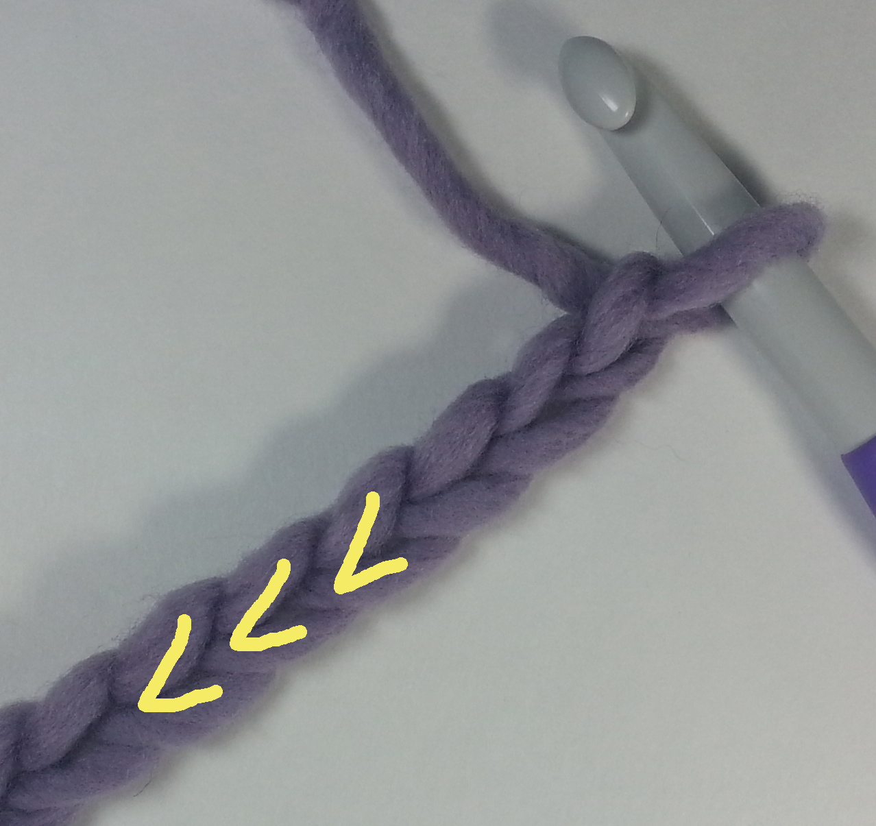 First of all, let’s look at the anatomy of a chain. The tops of the stitches are the V that we saw with the top of our single crochet stitches in Part 1.