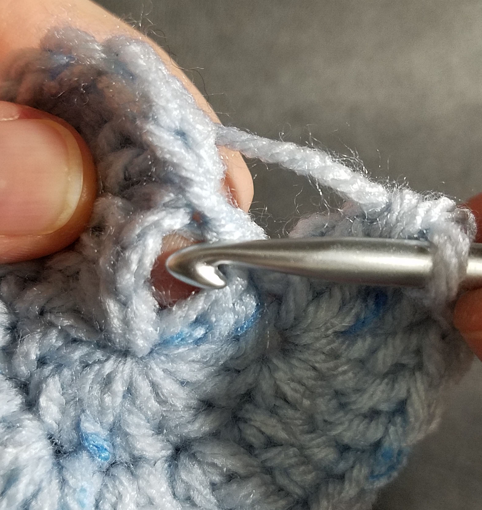 Work the ending slip stitch between the final dc stitch and starting chain of Round 1.