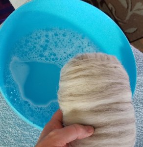 I had the video on my facebook page and stated that I was wondering how she felted her rocks. My friend Angela sent me a link to a video on YouTube where they were felting around actual rocks. That got me wandering around YouTube looking at a variety of felted rock and other wet felting videos. I decided it was time to try felting my own wool river rock.
