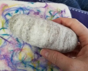 I also used my felting stone when I started getting the rock closer to the shape I wanted. The felting stone helped me smooth the surface of my “rock”.