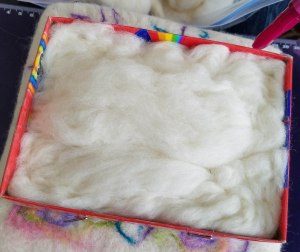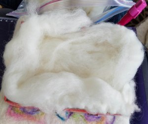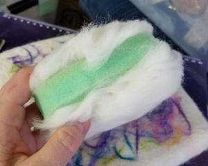 Now I had a little wool and foam sandwich to wrap with my special fiber. I set that aside for the moment.