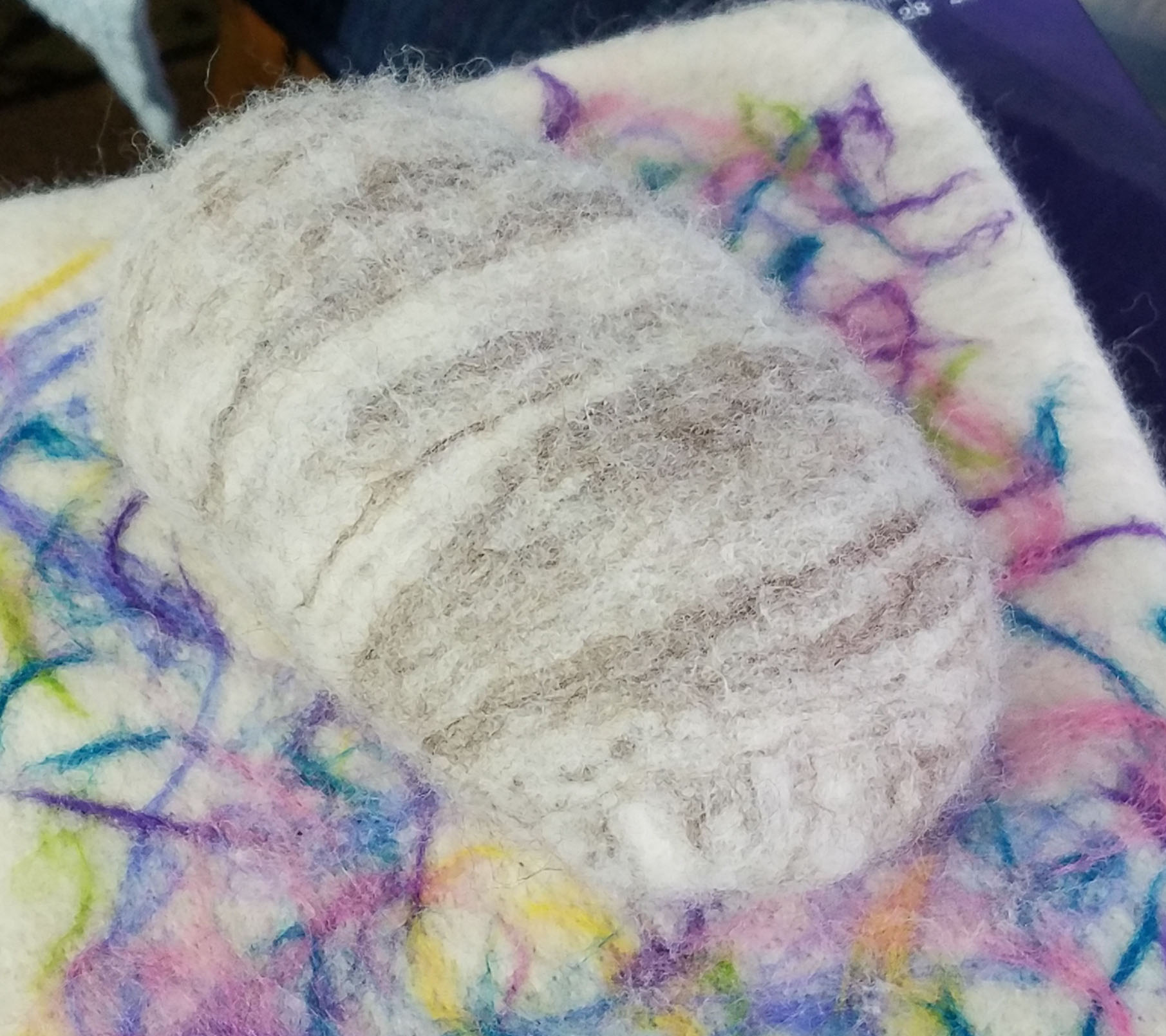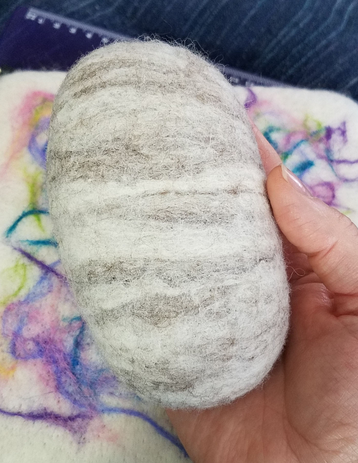 I had the video on my facebook page and stated that I was wondering how she felted her rocks. My friend Angela sent me a link to a video on YouTube where they were felting around actual rocks. That got me wandering around YouTube looking at a variety of felted rock and other wet felting videos. I decided it was time to try felting my own wool river rock.