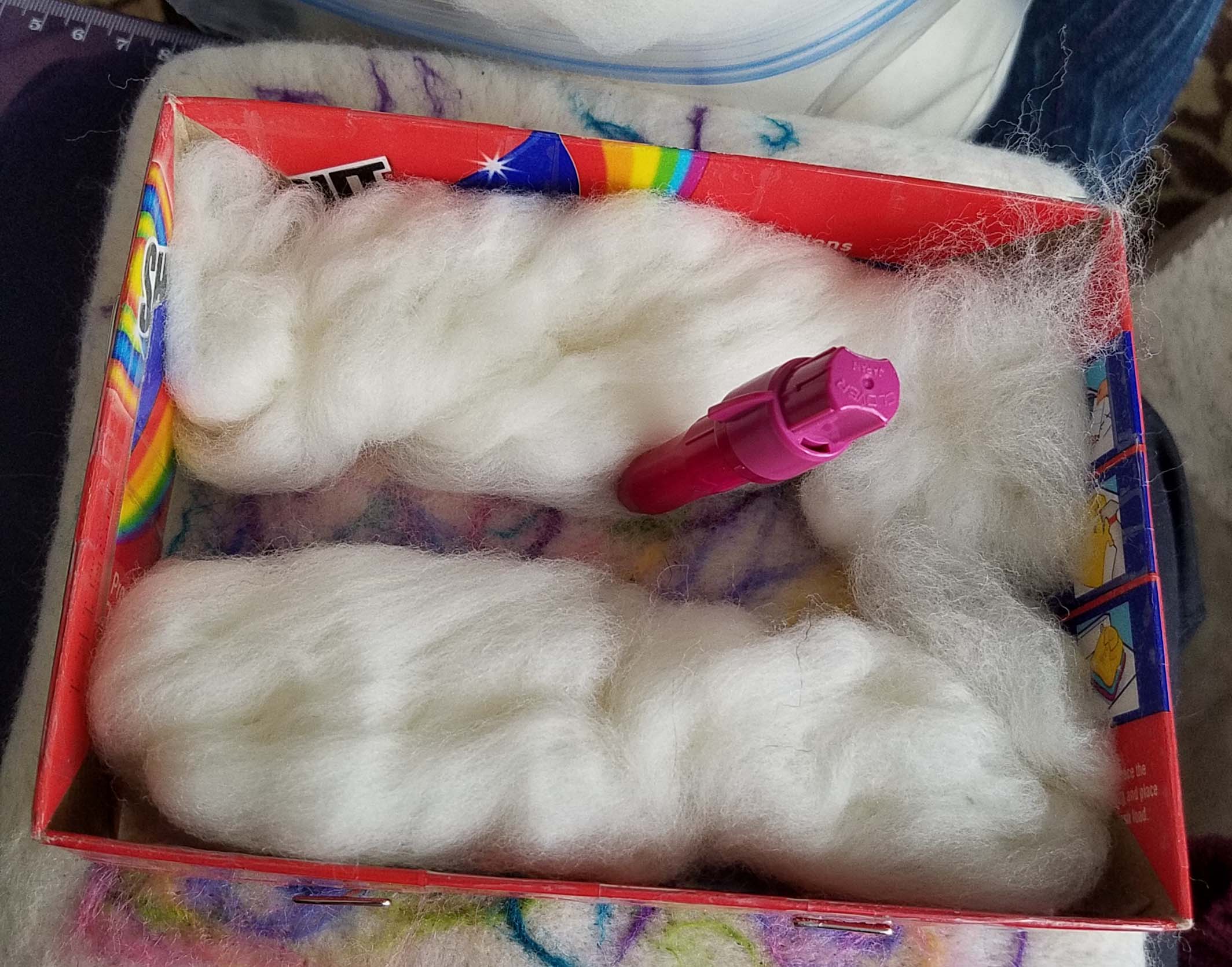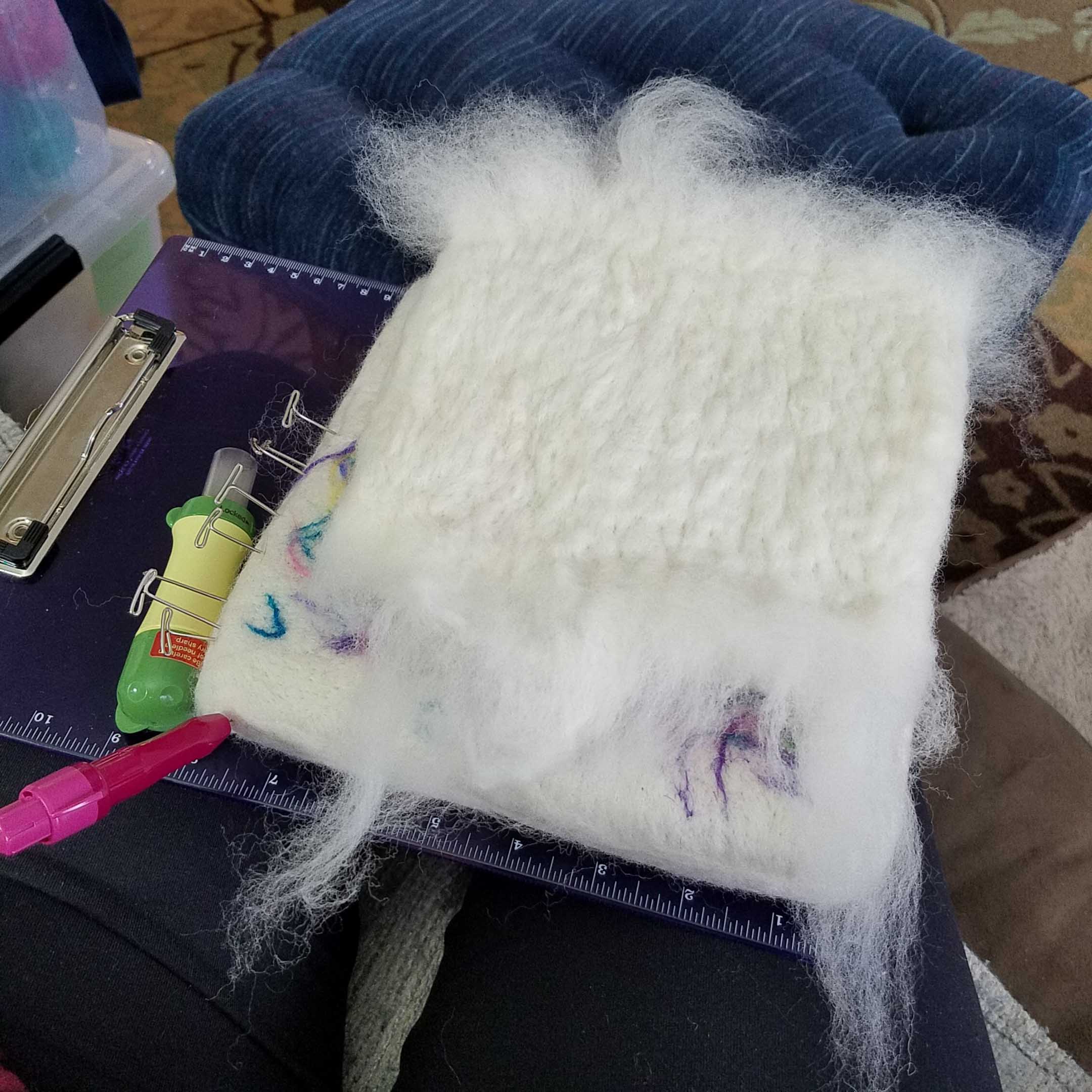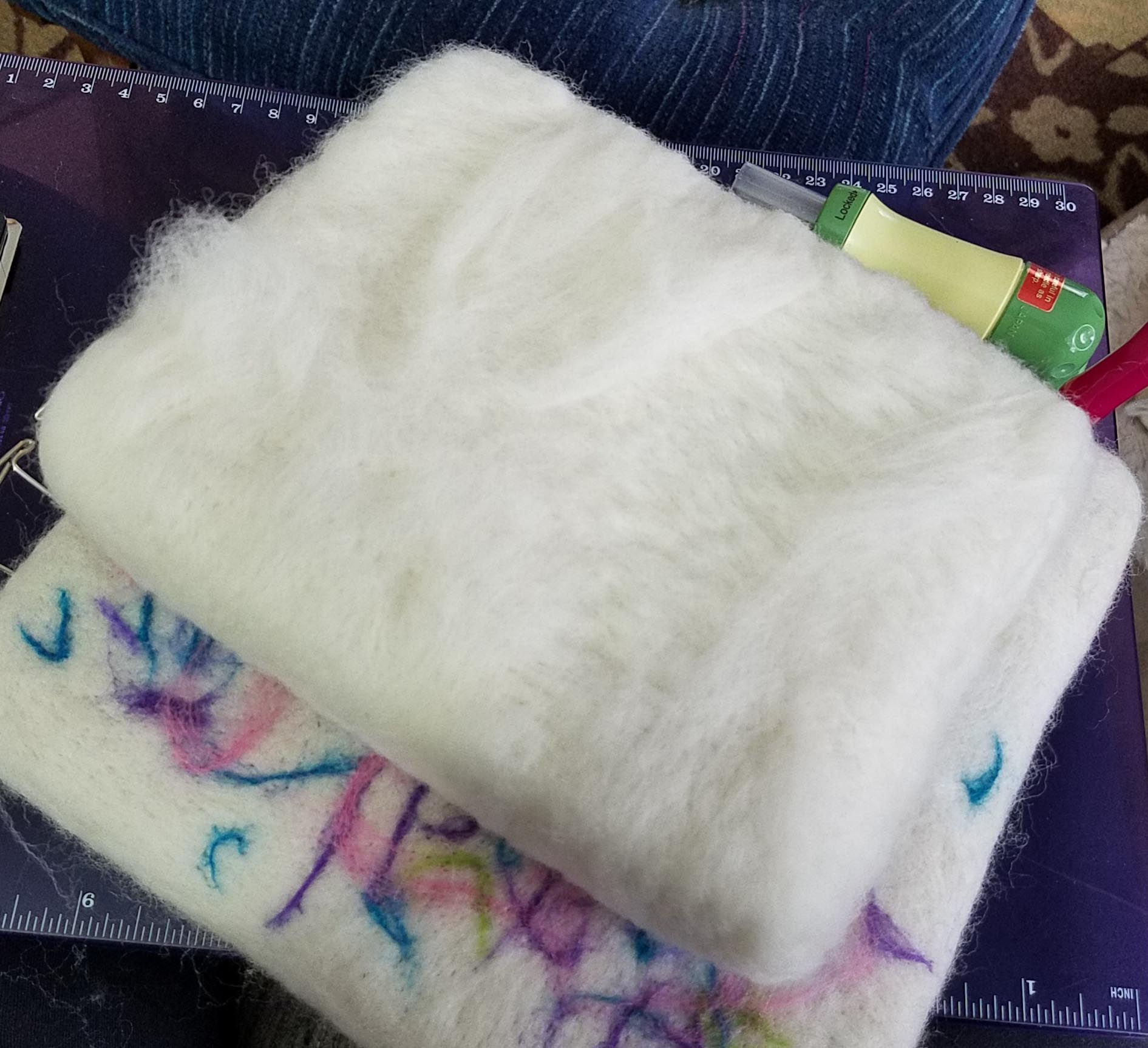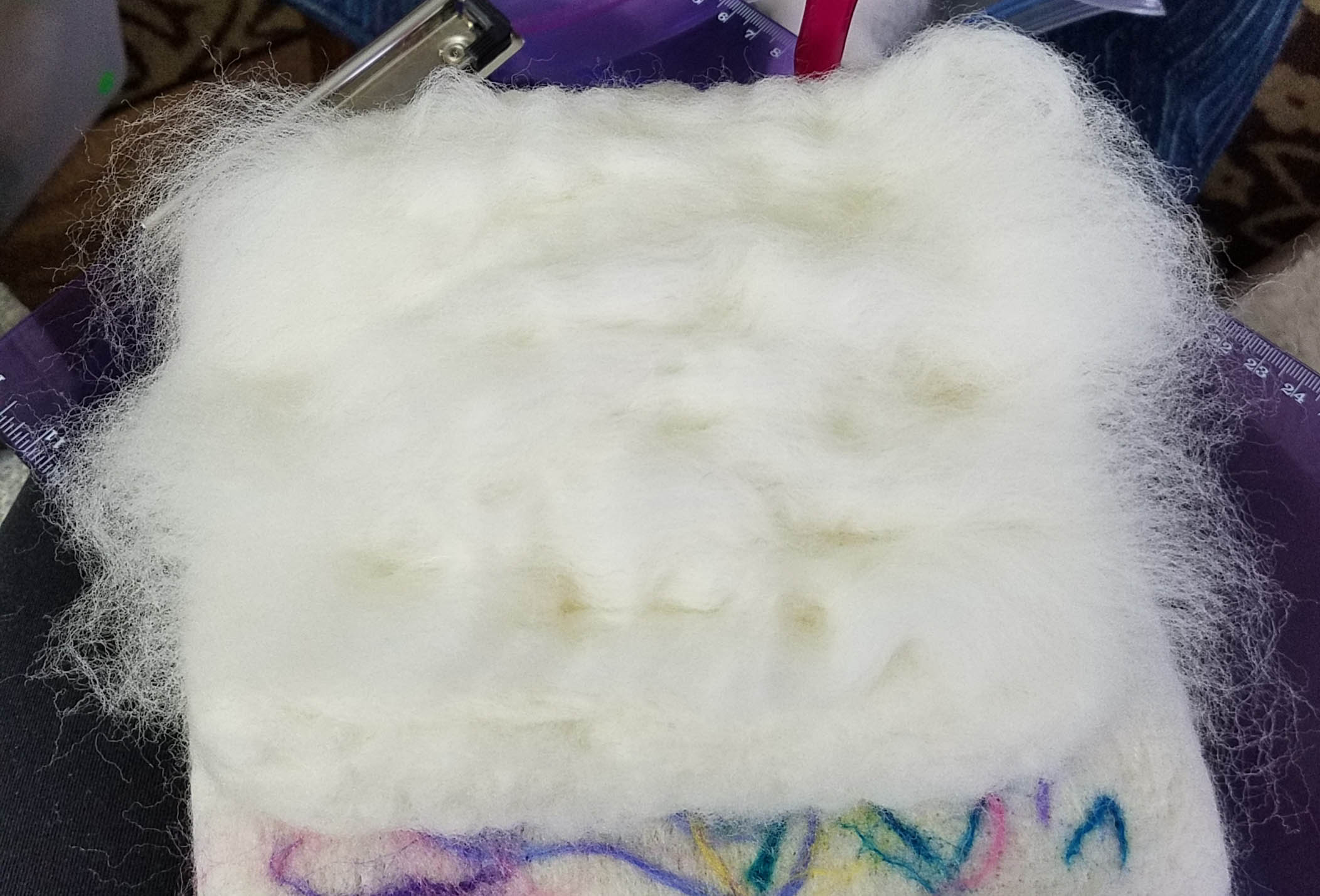 Now I had a little wool and foam sandwich to wrap with my special fiber. I set that aside for the moment.