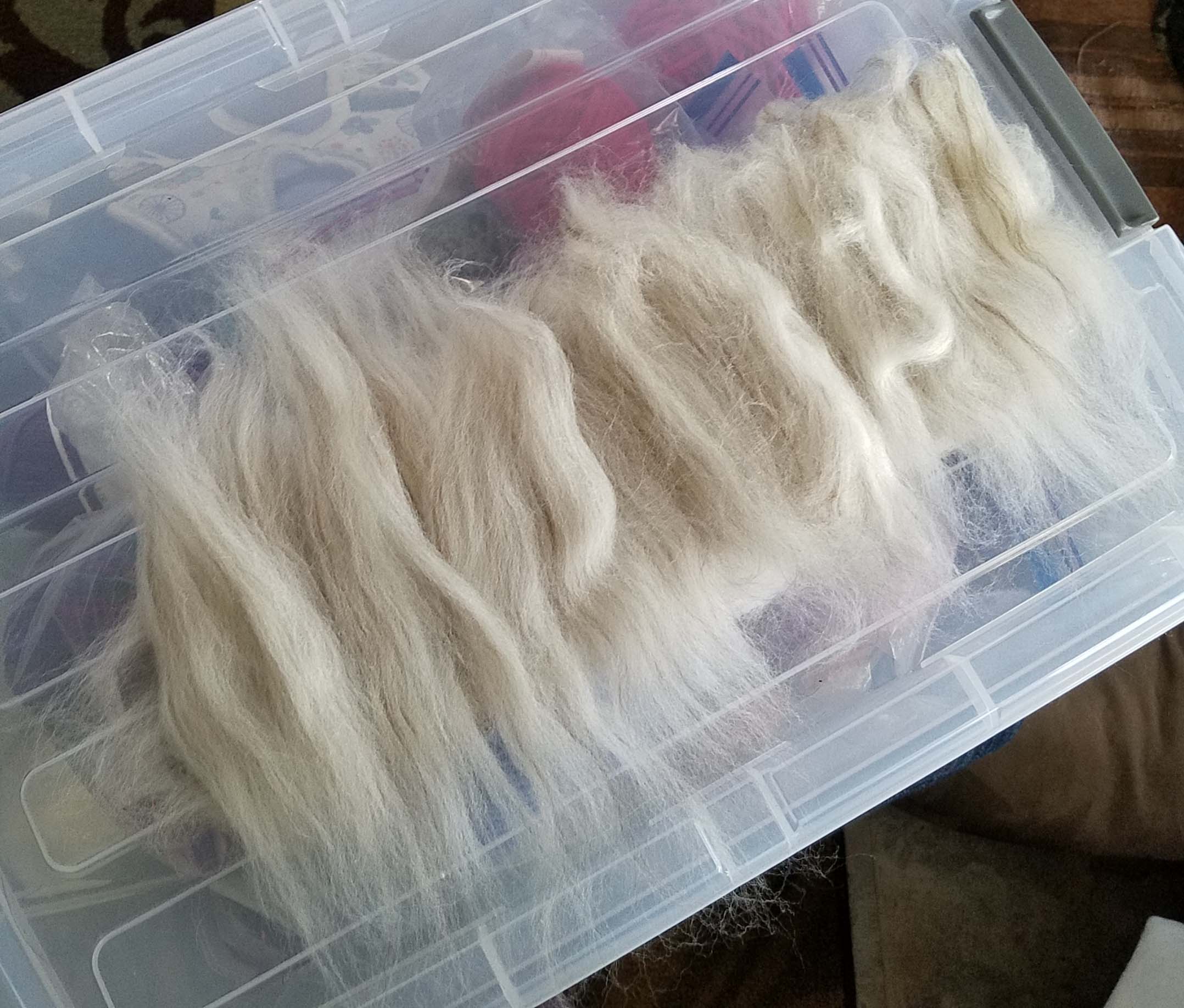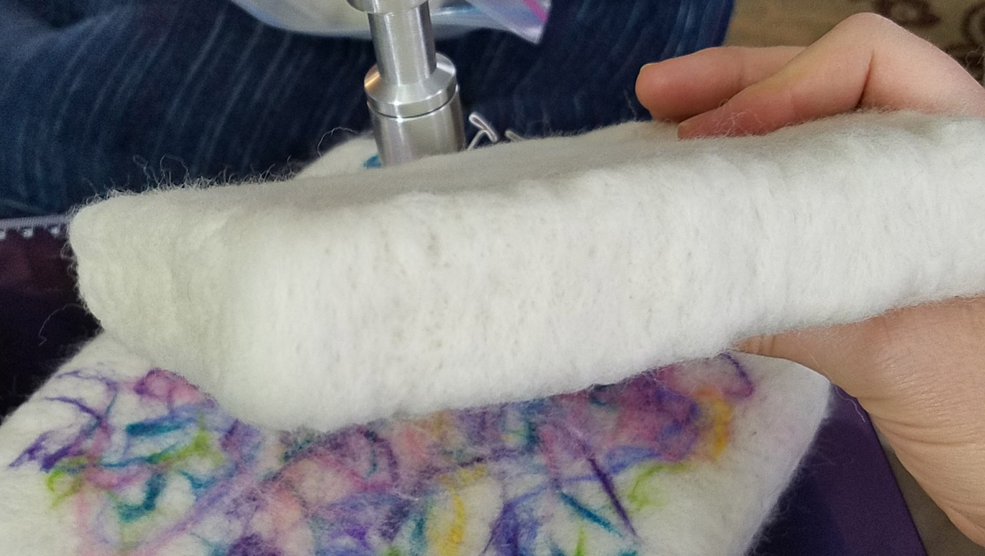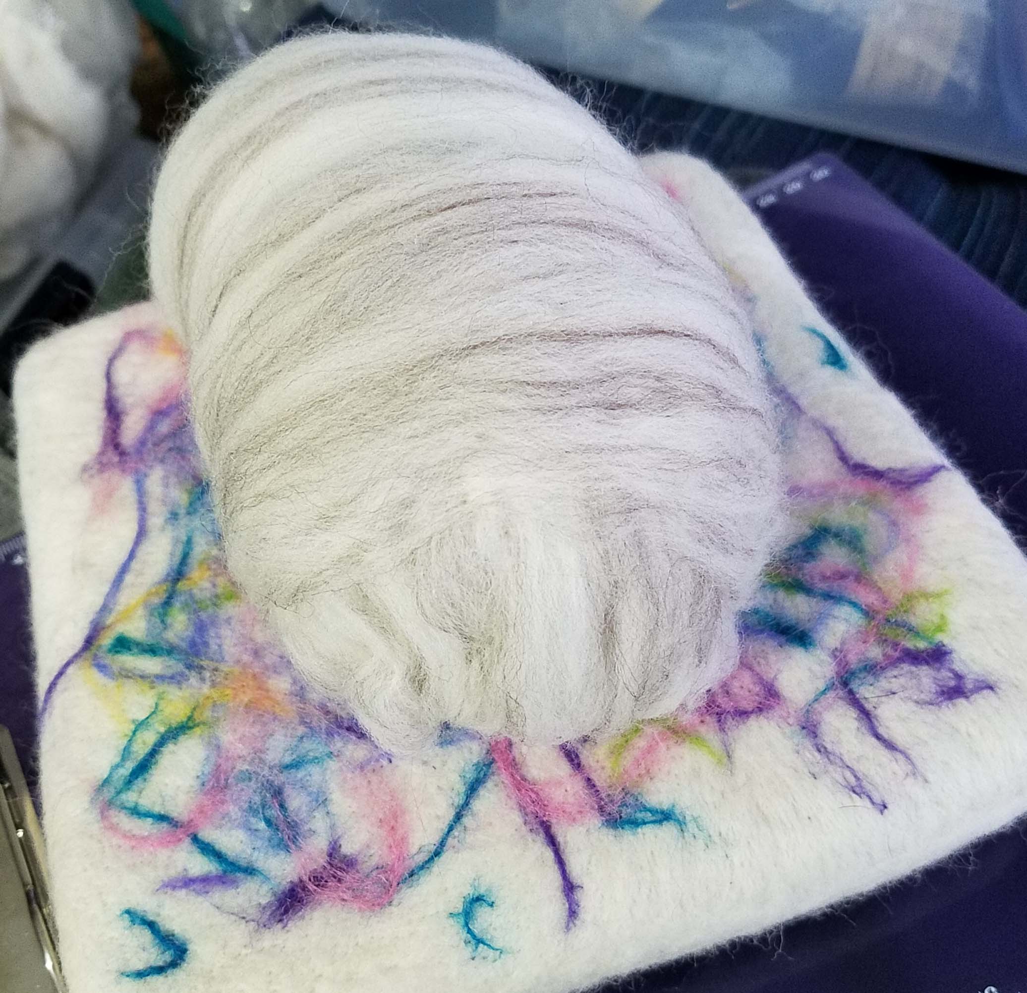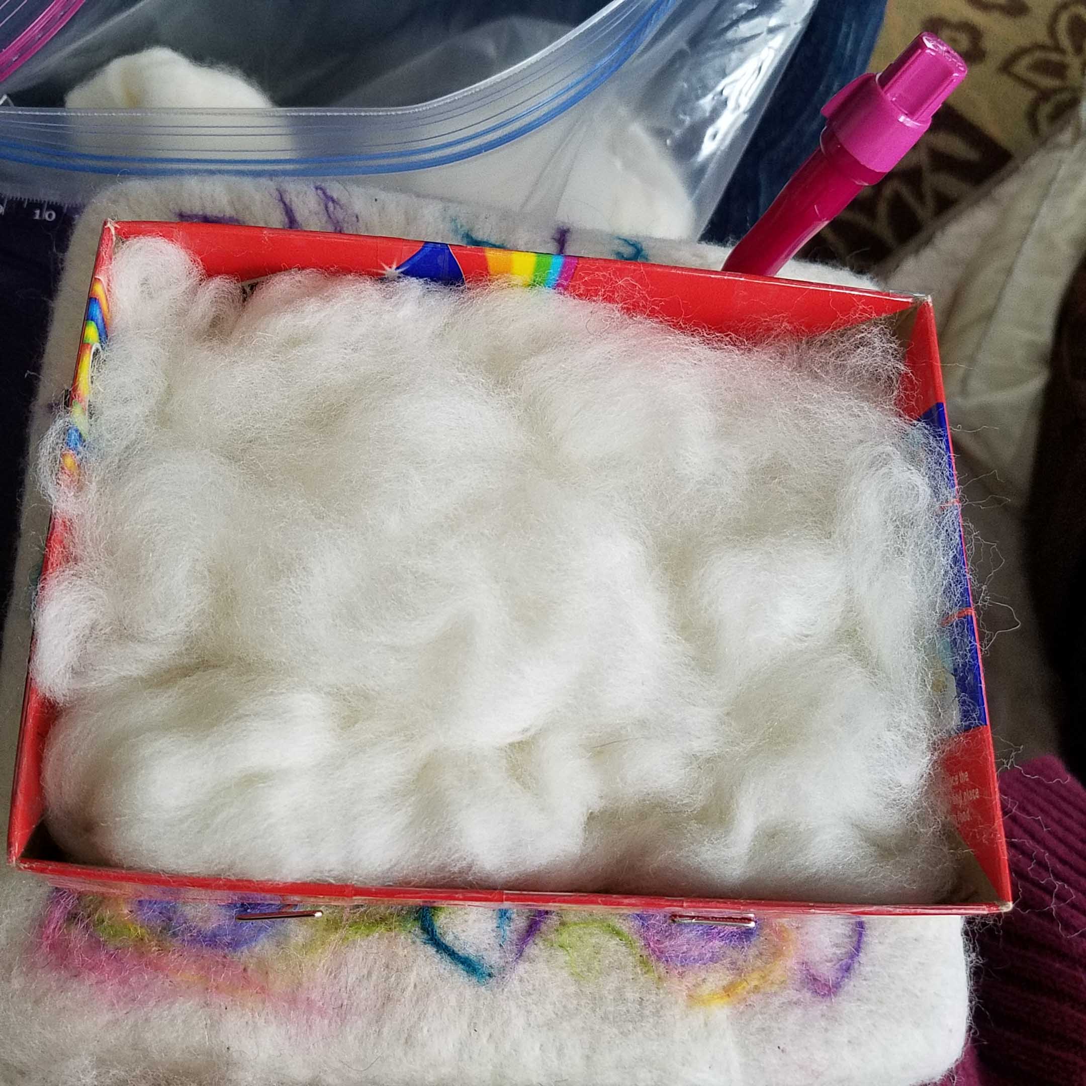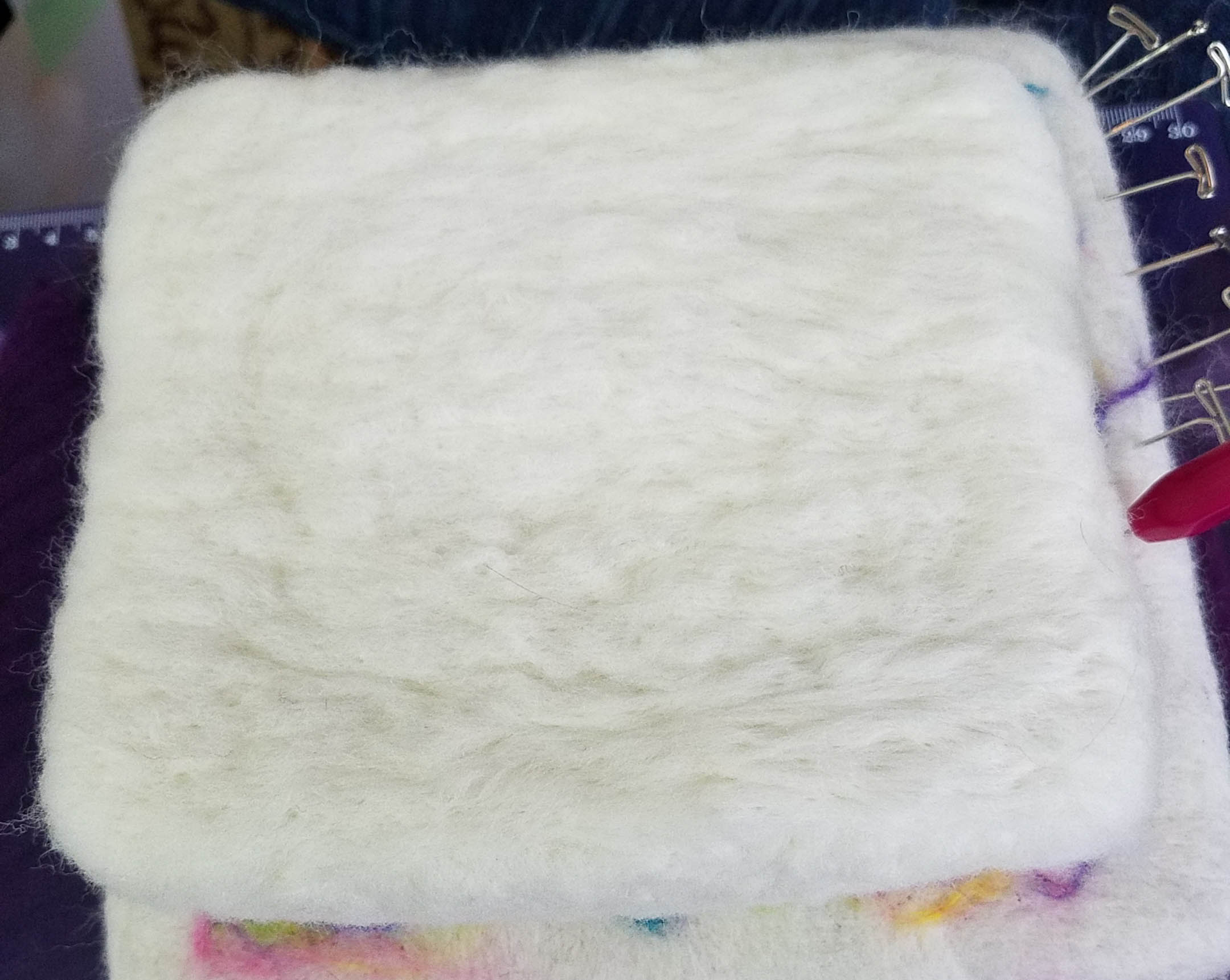 Now I had a little wool and foam sandwich to wrap with my special fiber. I set that aside for the moment.