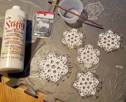 The basic supplies you will need to stiffen your crocheted snowflakes are: