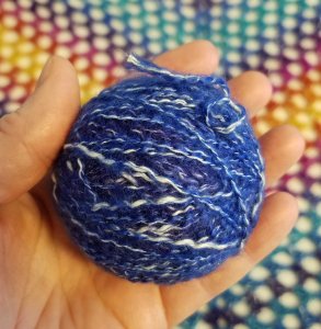 I had only 22 g/70 yds of yarn left from the second ball. My favorite thing about a top-down shawl is that you can stop wherever you want, depending on the size shawl you want and the amount of yarn you have.