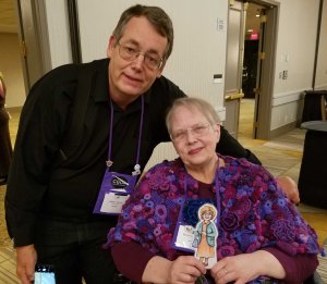 Tuesday evening was all about getting settled into Jan and I’s room and re-uniting with lots of friends. The next day I was going to be very involved with Professional Development Day so didn’t have too late an evening. I was one of the first to arrive at the room for PDD, and helped with set-up. One of the first people I got to meet was Debra L who knew me because of Florence and her adventures on Instagram. So of course, we needed a photo with Florence and Debra before the day was done. I’ll get into more detail about Florence in a future post, you’ll be seeing her a lot in photos from this conference though.