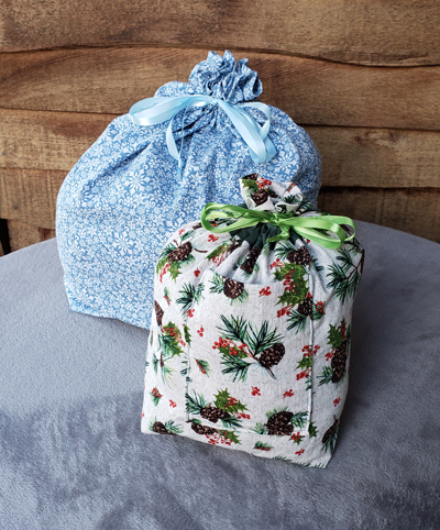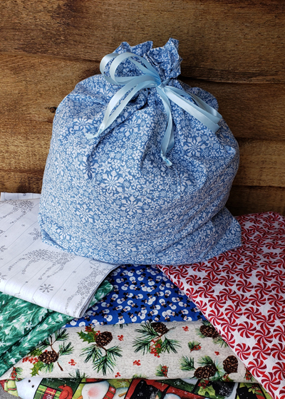 Last Christmas I was frustrated by the amount of wrapping paper waste in my house after all the gifts were opened. I try to use sturdy gift bags as much as possible so they can be re-used from year to year, eventually they start to fall apart. Then I had a thought, “What if I made fabric gift bags that could be re-used and even washed.”