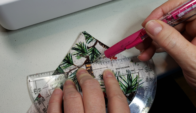 Sew along the marked line. Then trim off corner within ¼” of sewn line.
