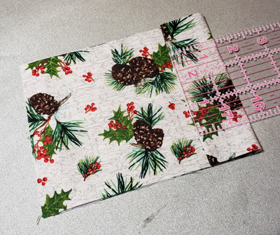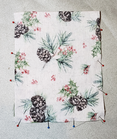 Fold over ¼” to wrong-side of fabric along short ends and press. Fold over ¼” to wrong-side of fabric along long edges and press.