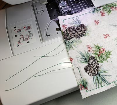 Then pull threads to one side of seam and tie in square knot. This will keep bottom seam from coming un-done while turning pocket right-side out.
