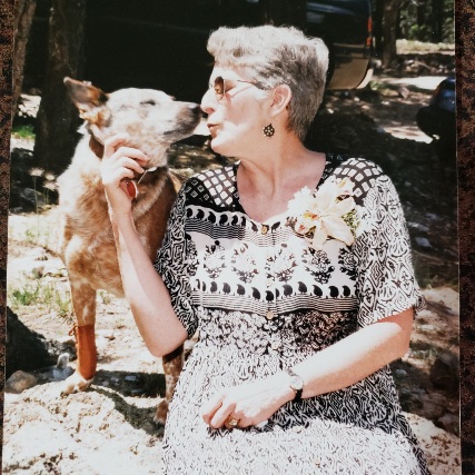 She grew up on farms and ranches in Kansas and Texas. Sometimes she would joke that she learned to ride a horse before she learned to walk. She loved horses right up to the end. I had sent her a pop-up birthday card with a herd of horses in it for her birthday this year. She also adored dogs. The photo above is Mom with her Sarah Dog at my wedding. I had the startling realization this week that I am now the same age as my mother was on my wedding day.