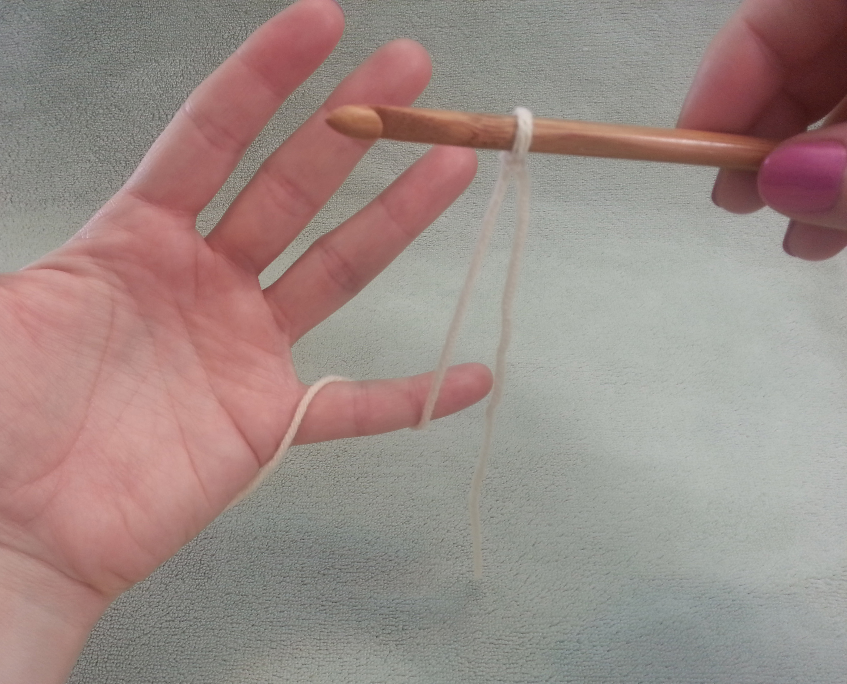 I create a loop with the working yarn (coming from the ball of yarn) going over the top of the beginning tail, then reach thru the loop with my hook (or fingers) to pull up a loop from the working yarn, I place that loop over my hook and gently pull on the working yarn to snug the loop on my hook.