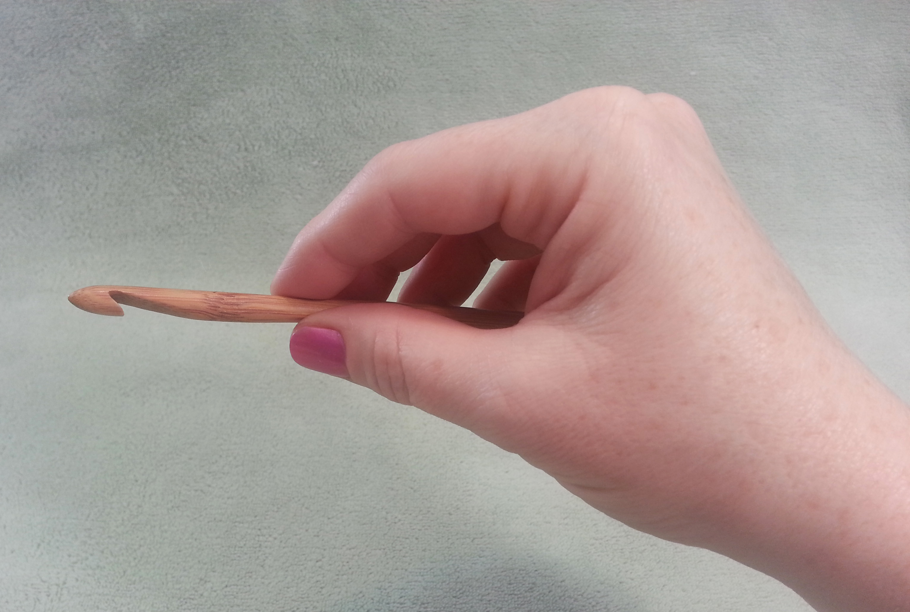 I then use the middle finger and thumb of my left hand to hold at the base of the loop on my hook. This allows my hook to move freely in the loop.