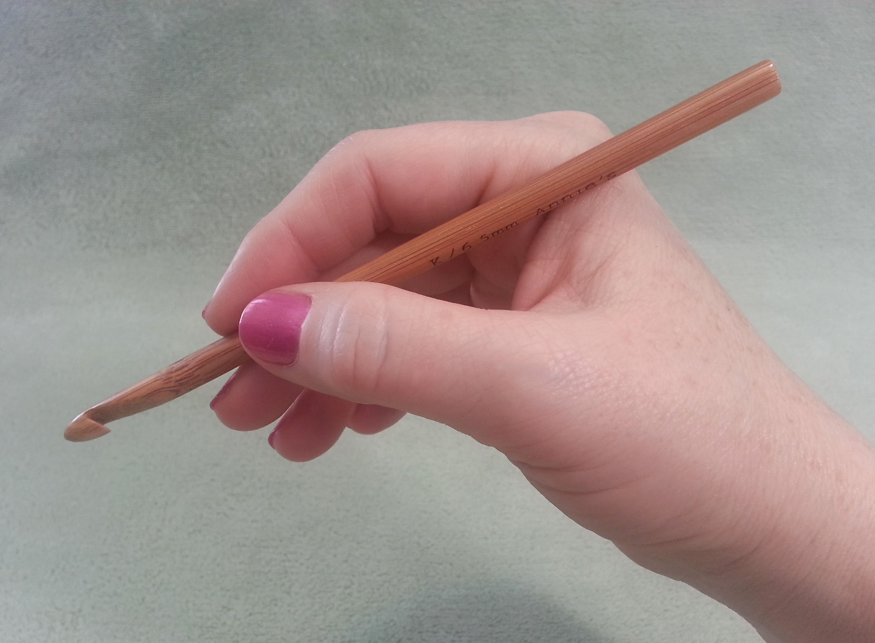 If you’ve never crocheted, or it’s been a long time since you crocheted, you may have forgotten how to hold your hook and yarn. These photos Show how to hold the yarn and hook if you are right-handed. For left-handed crocheters just reverse which hand holds the yarn and hook. The most important thing to remember when crocheting is to keep your hands relaxed.