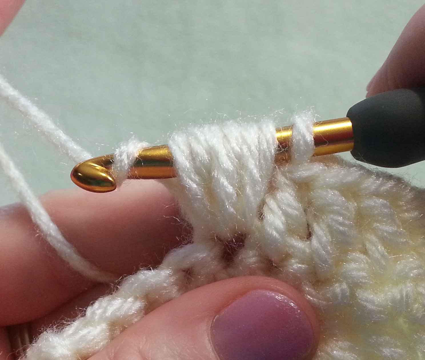 In this headband project we are using a 3 dc cluster stitch to create our textured stitches. In a cluster stitch you make the base of the 3 dcs being used, then work the final dc step for all 3 in one go.