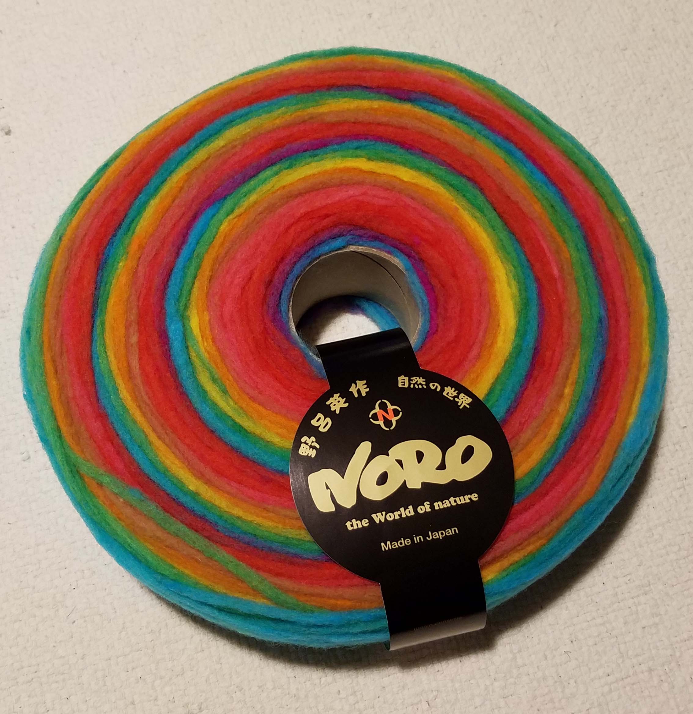 I’ve also been doing some clearing of the clutter in my yarn and fiber stashes. I had purchased this fun Noro product last summer. It isn’t really yarn but a very narrow piece of fiber without any twist. That means it tends to break easily and I’ve been using bits of it when doing needle felting projects.