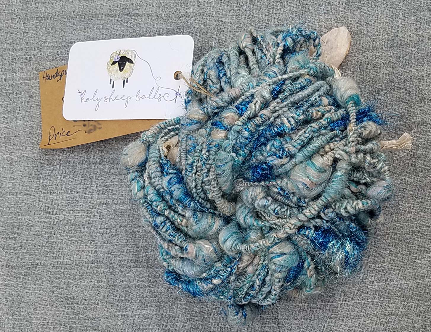 I had to stop and visit the lovely Christine at Holy Sheep Balls because the name was so great. She had some gorgeous “art yarn”.