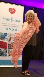 During the Fashion Show, Nancy Smith modeled my Shining Day Wrap. It got a bit comical because she kept getting tangled in the lace.