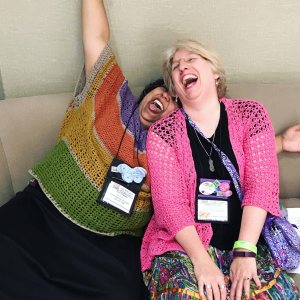 Initially I was going to hand letter the signs, but fortunately the brilliant Pia Thadani stepped in and typed the signs for me on the computer and we were able to have them printed at the registration desk. Pia and I even had a moment to clown around together afterward.