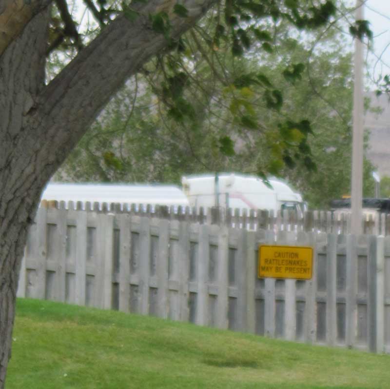 We were east of Cheyenne, Wyoming a few hours later. Though I take any photos until we stopped for an early supper close to 5 p.m. There was a sign at the rest stop that got our attention, “Caution, Rattlesnakes may be present”.