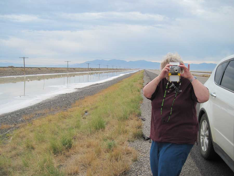 We couldn’t really see the Great Salt Lake as we drove away, but there were these interesting canals with salty patches all along the highway. We got out to take pictures and were surprised at how stinky the air was.