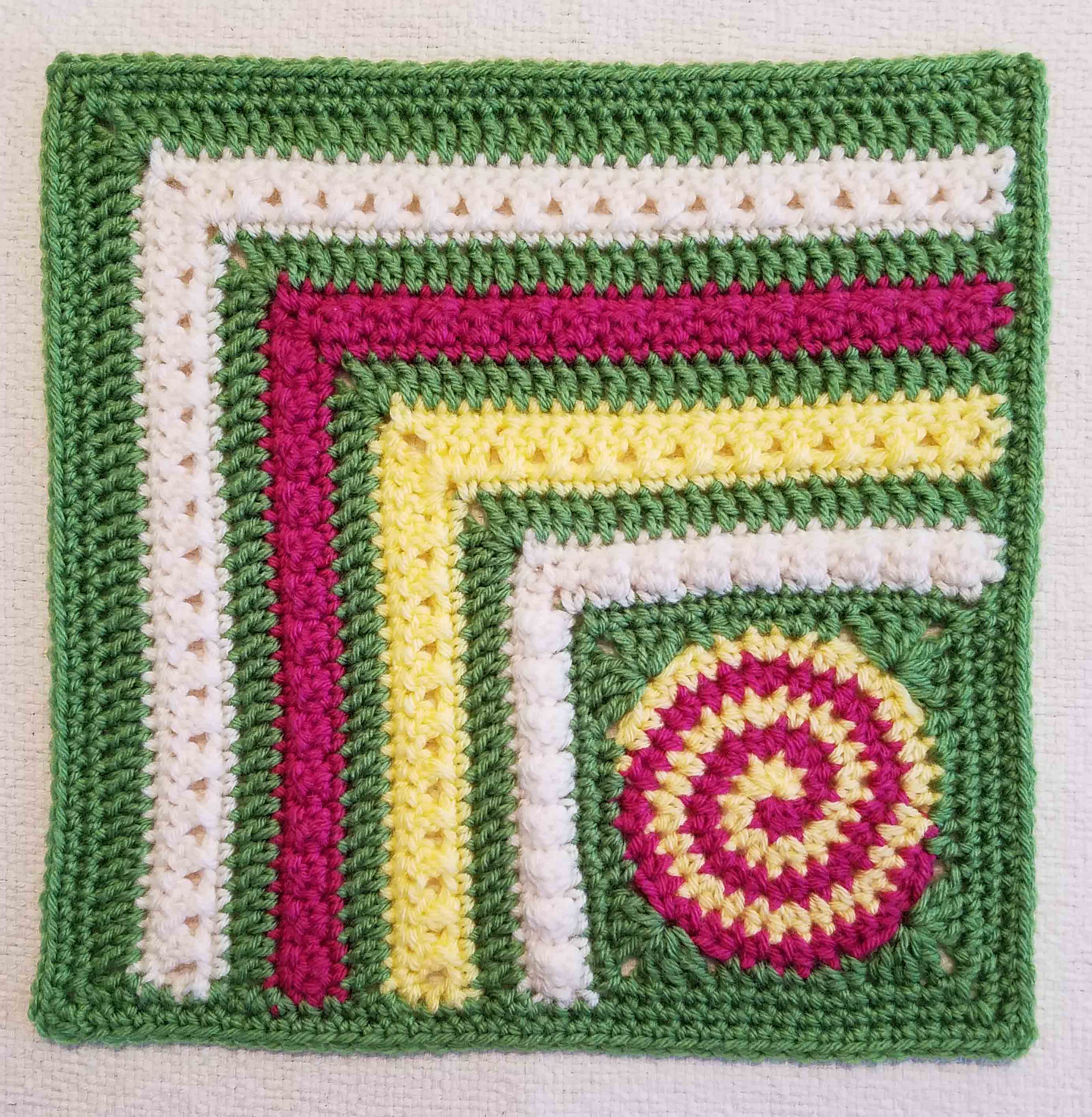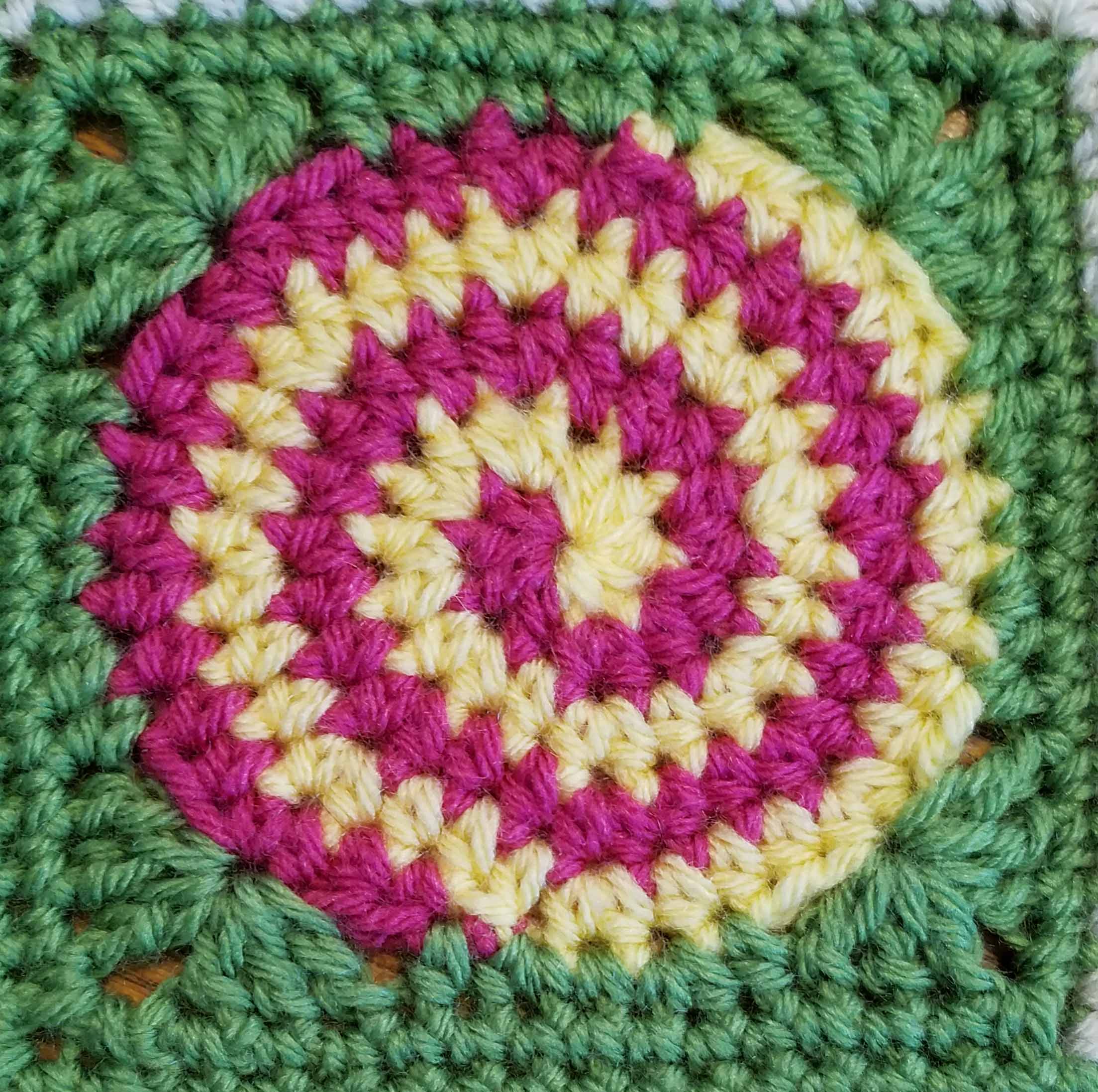 The result is my “Dizzy Corner Afghan Square”.