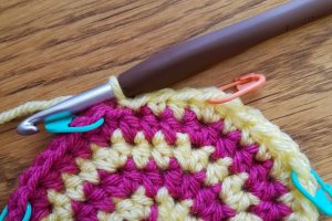 Row 14: Repeat Row 10 in Color A, Fasten off Color A. [50 sc, 1 ch-2 sp]