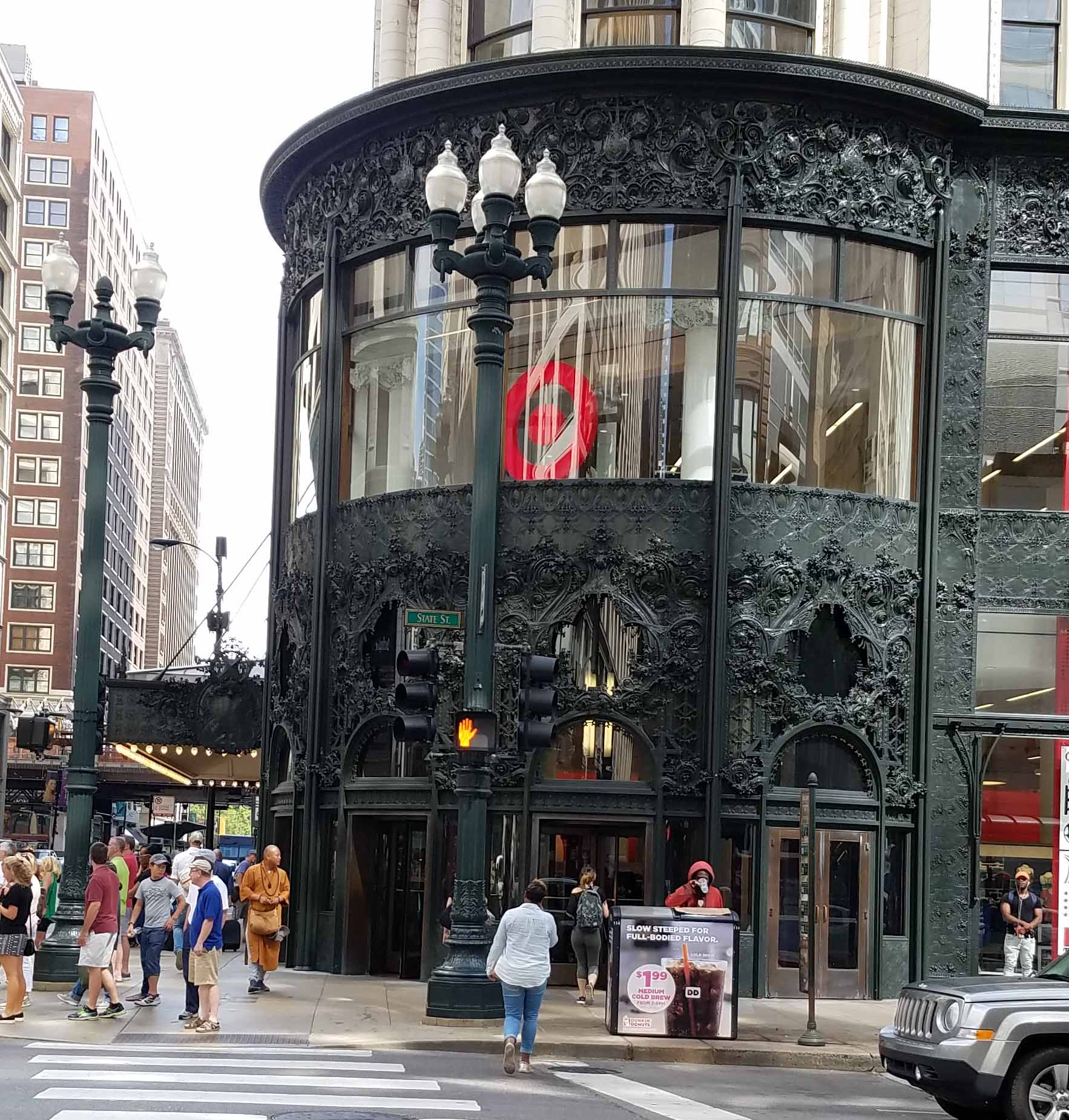One of the things I most enjoyed about Chicago was the use of intricate metal working in the architectural details. Jan had taken us on a specific path thru the city from the El to the Institute so I could see the beautiful Carson, Pirie, Scott & Company store building (also known as the Sullivan Building). She was a bit horrified to realize it had been converted into a Target store. Though we were glad that the conversion was subtle, it had actually taken us sometime to realize it was a Target store and no longer the department store that Jan had known.