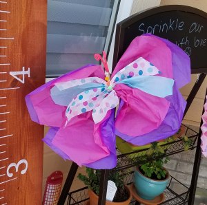 I wanted the blanket part to be large enough to cover baby’s torso and legs in her car seat. So after I used all the purple yarn I used some yellow and green to complete the blanket edging. I wanted the yellow for the feel of little butterflies since Amanda is decorating the baby’s room with butterflies.