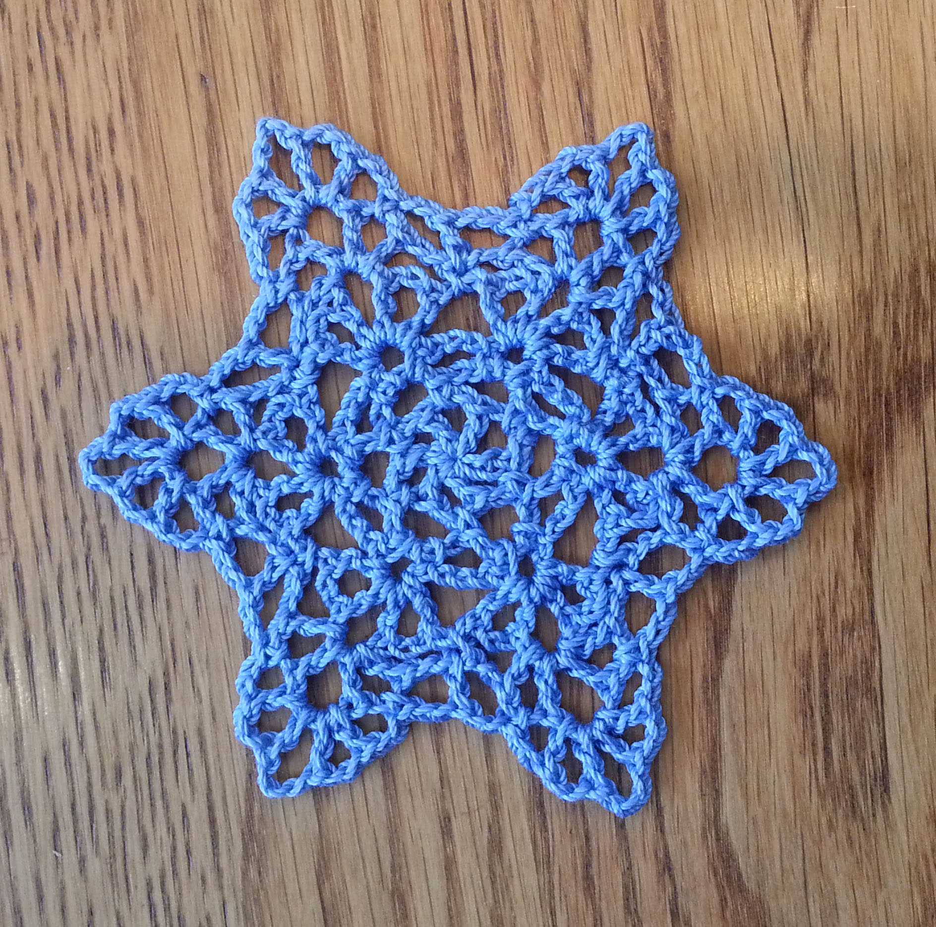 I crocheted the snowflake up to the last round, then connected the last round at 4 points.