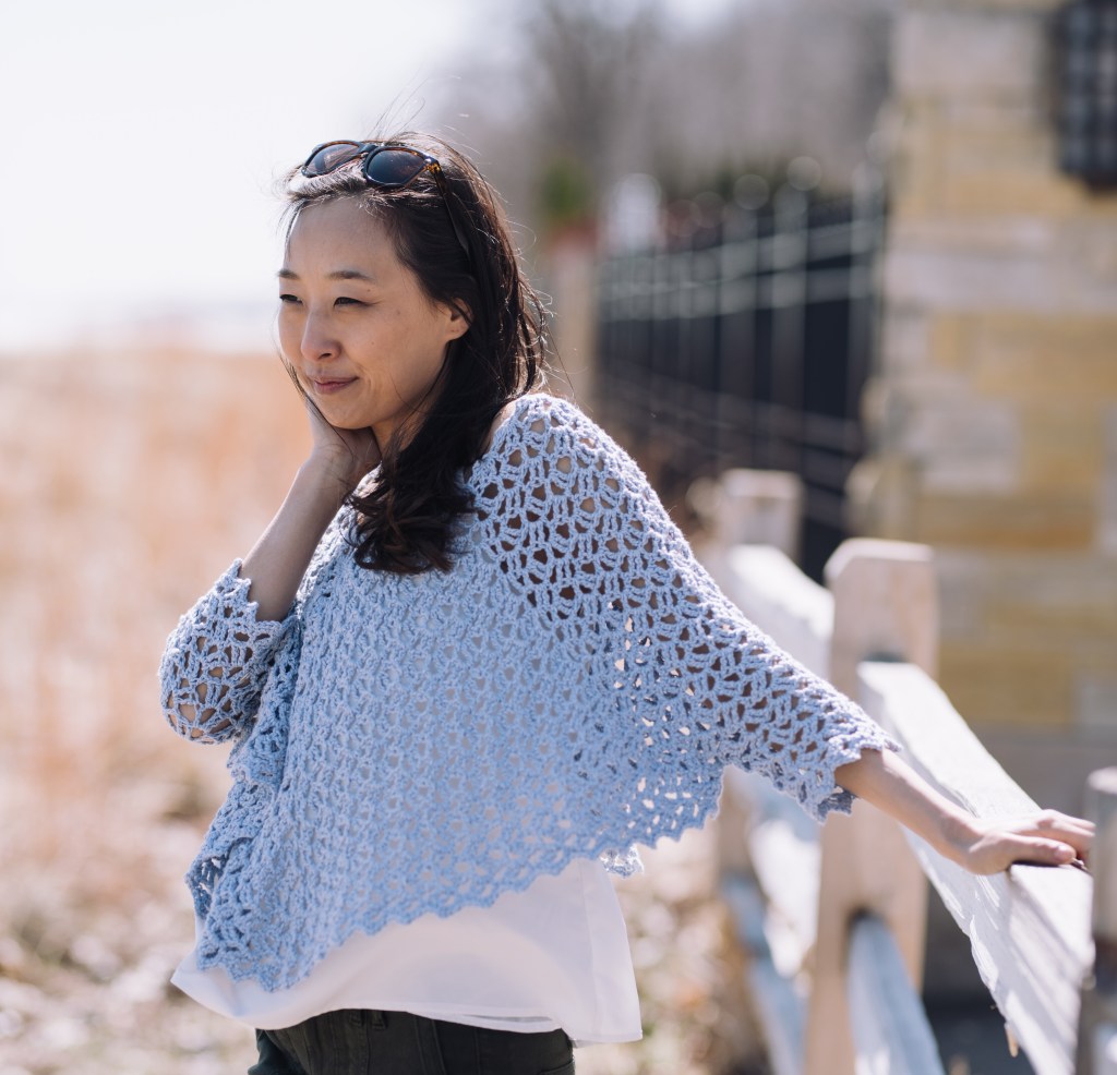 Lovely Lace Ponchette in the Winter 2021 issue of Crochet! Magazine. Designed in one of my favorite yarns, Berroco “Folio”. This is a super soft yarn with great warmth, so this lacy layer is perfect for a cozy cover-up as the temperatures drop.