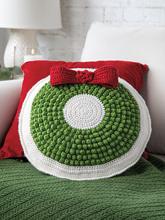 Jolly Wreath Pillow in the Fall 2021 Crochet World: Have a Happy Crochet Christmas special issue. More bobbles for nubbly wreath on a cuddly round pillow to decorate for Christmastime in your home.
