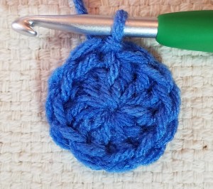 Rnd 3: Ch 1, sc in next 2 sts (ch 6, skip next ch-1 sp, sc in next 2 sts) 5 times, ch 6, skip next ch-1 sp, slip st to first sc of Rnd. {12 sc, 6 ch-6 loops}