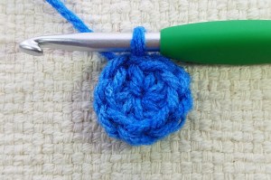 Rnd 2: Ch 1, (2 sc in next st, ch 1, skip 1 st) 6 times, slip st to first sc of Rnd. {12 sc, 6 ch-1 sp}