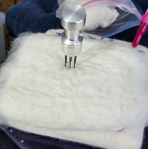 It can be helpful to also place pins in the center of the snowflake after securing the first 2 points. This is especially helpful with really open stitch work, it will keep the other 4 points from pulling it off center. I remove the center pins once I’ve got the 6 points secured.